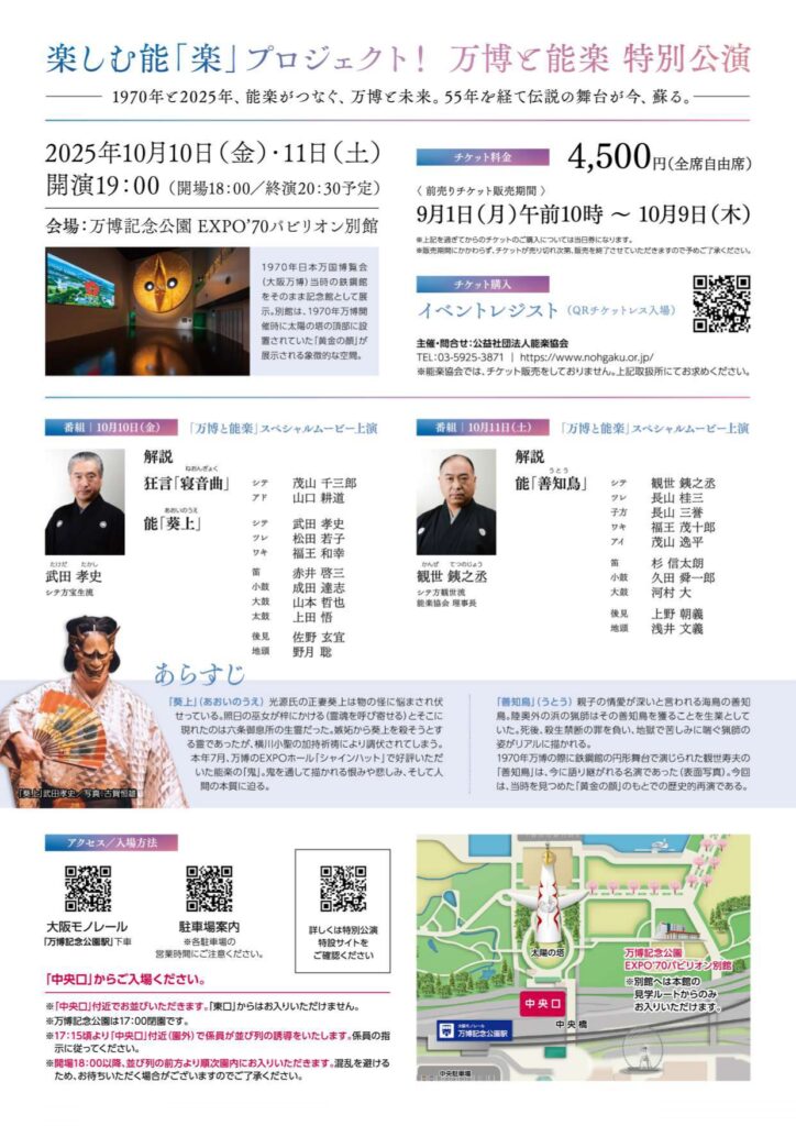 「未来につなぐ」をテーマに、能楽界がお届けする万博年にふさわしい特別公演です。