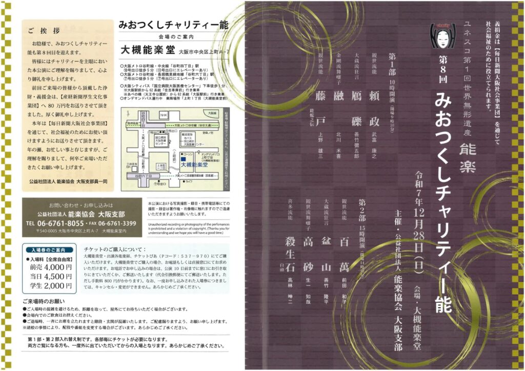 学生券 2,000円 芦屋能舞台にても、メールにてお申込みくださいませ info@ashiya-nohbutai.com
