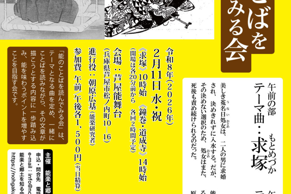 第46回「能のことばを読んでみる会」《求塚》決めない選択の罪|第47回「能のことばを読んでみる会」《鐘巻・道成寺》
